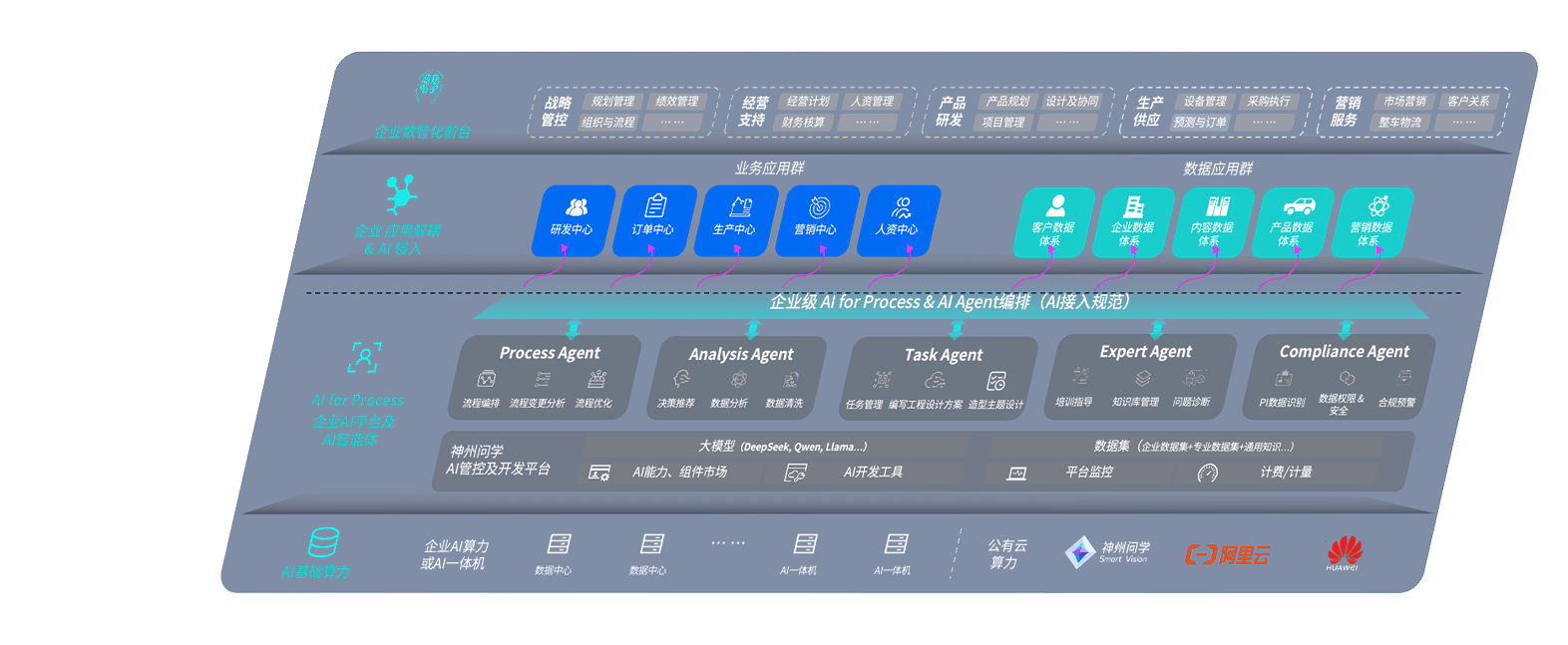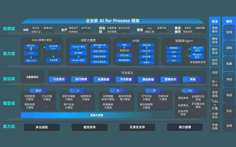 端到端的一站式AI工作空间深度融合了从企业战略规划到日常经营的全流程业务板块,,,,定向解决车企内部领域多、、、部门多、、、链条长、、、场景碎片化等难题,,支持车企快速构建以AI为核心的生产力写作体系,,,实现任务执行与AI能力的无缝集成与交互